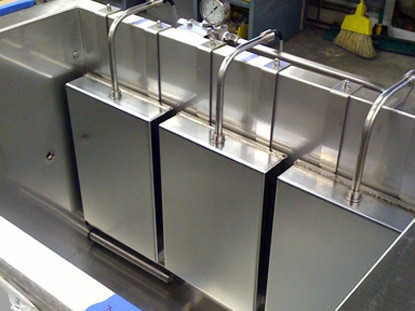 Ultrasonics experienced engineering team is available to design a custom immersible ultrasonic transducer installation for any cleaning or process application.